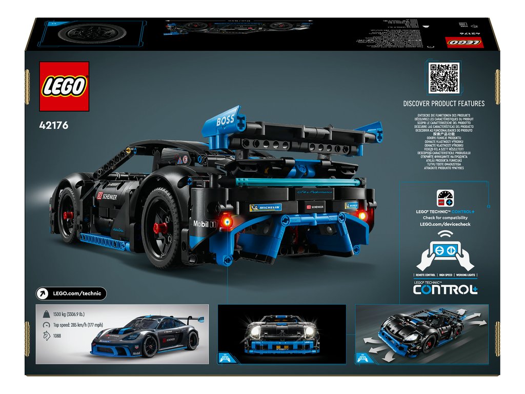 Pozvite deti od 10 rokov do napínavého staviteľského projektu s týmto Pretekárskym autom Porsche GT4 e-Performance (42176) zo série LEGO® Technic. Model pretekárskeho autíčka na diaľkové ovládanie sa dodáva s množstvom interaktívnych prvkov a je najrýchlejším autom (k augustu 2024) v sérii LEGO Technic CONTROL+. Vstúpte do aplikácie CONTROL+, aby ste mohli riadiť auto, ovládať jeho svetlá a naživo sledovať údaje o spätnej väzbe počas toho, ako si deti zdokonaľujú svoje vodičské schopnosti.