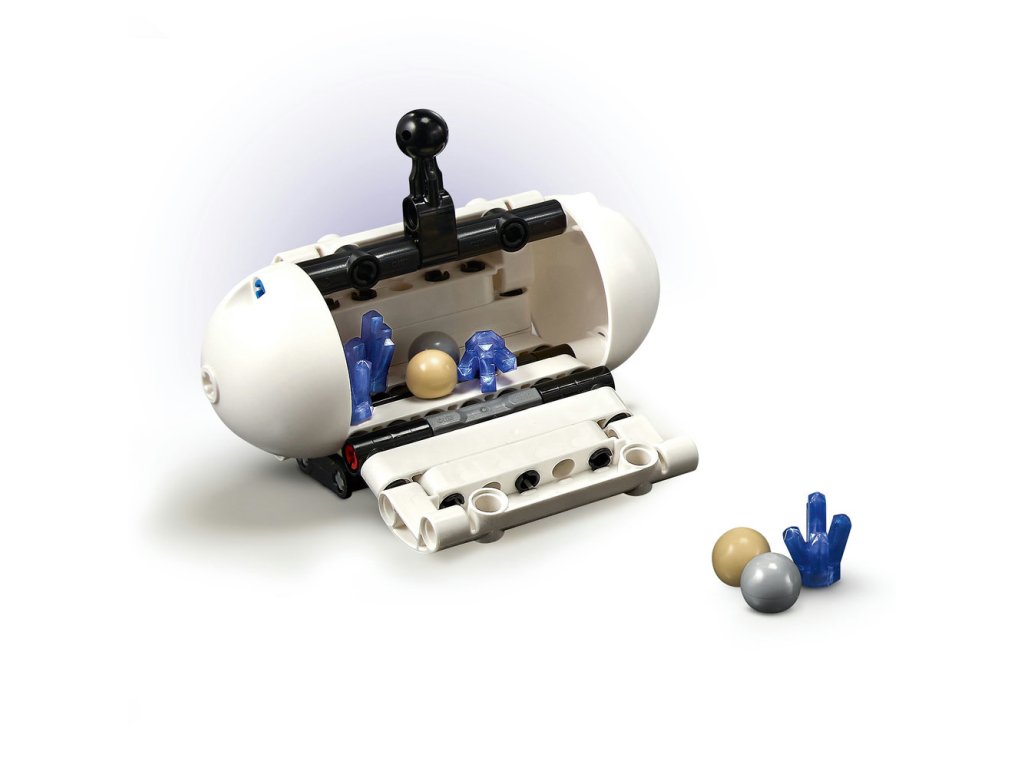 - Viac vozidiel a funkcií – Súčasťou stavebnice je terénny lunárny rover s tandemovým odpružením, riadením na 4 kolesá a výsuvnými solárnymi panelmi, plus menší ťažobný rover, kontajner na vzorky a MAPP rover